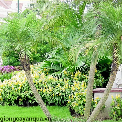Cây cau ăn trầu được trồng bố trí thành hàng dọc đường đi trang trí sân vườn